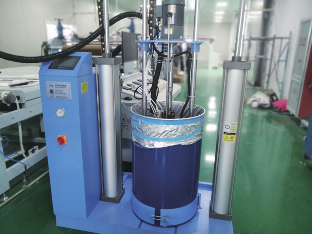 Система точного дозирования нагревает и плавит твердые гранулы полиуретанового клея до жидкого состояния. Головка для нанесения покрытия щелевого типа или роликовое устройство для нанесения покрытия наносят клей на поверхность подложки с точной толщиной и однородностью. Предварительно обработанная декоративная или функциональная пленка ламинируется на покрытую подложку с помощью прецизионного выравнивающего устройства под управлением системы контроля натяжения. Ламинирующие ролики создают соответствующее давление и температуру, чтобы обеспечить идеальное соединение пленки с подложкой без пузырьков и складок.